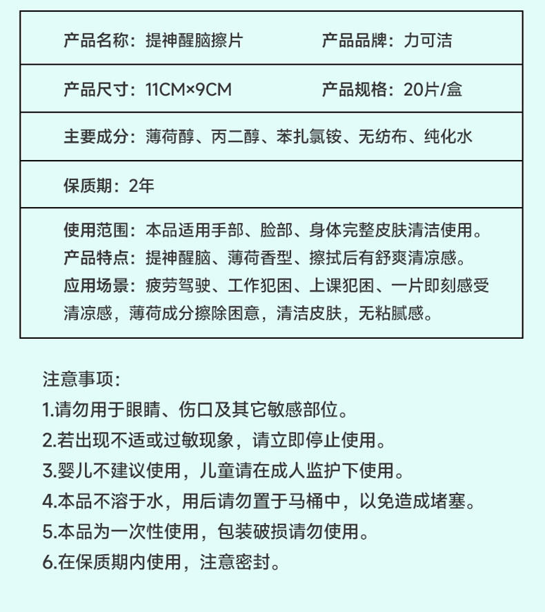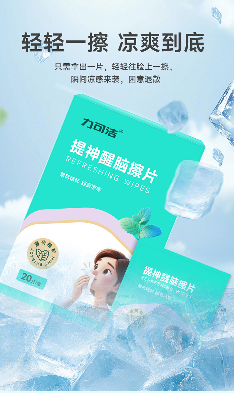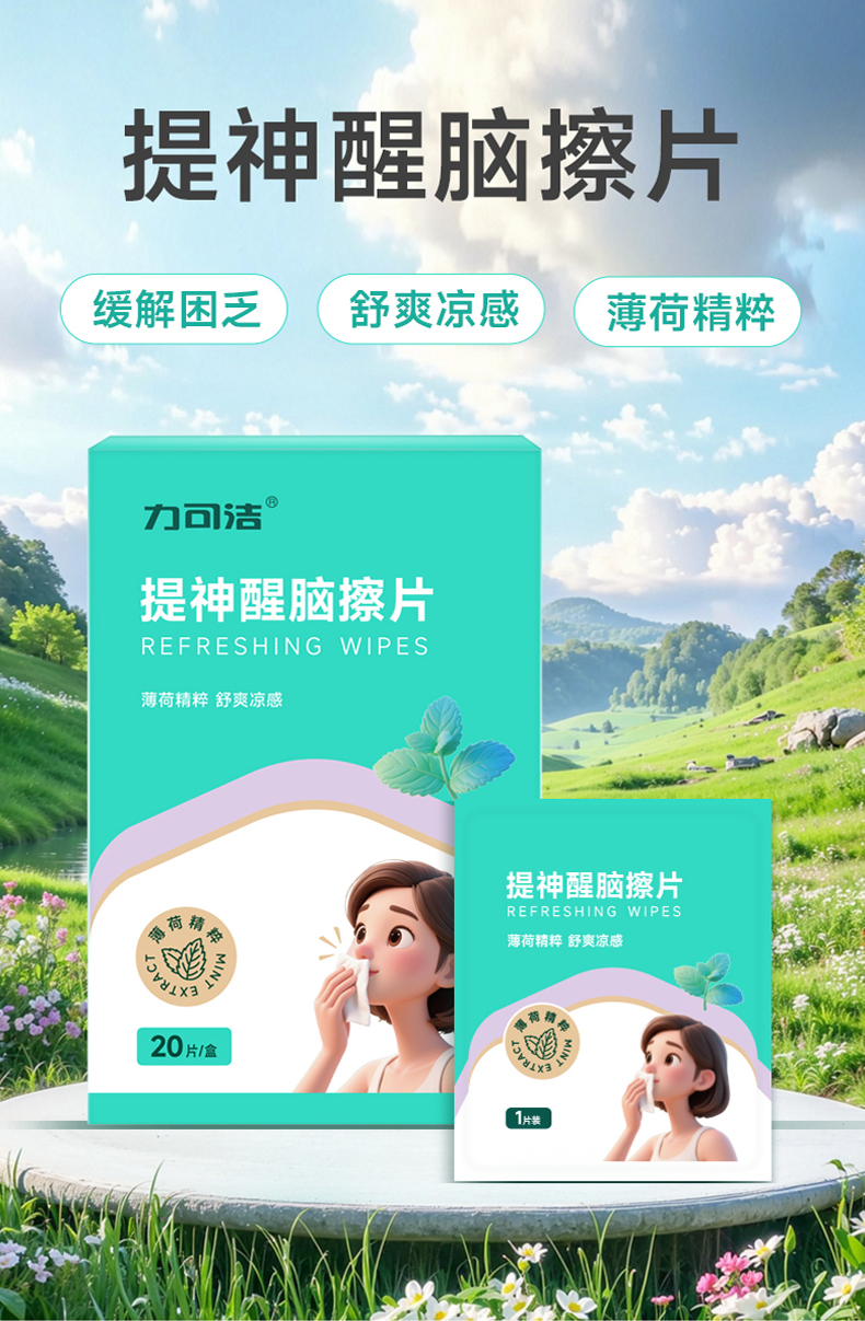提神醒脑擦片,含薄荷精粹,舒爽凉感