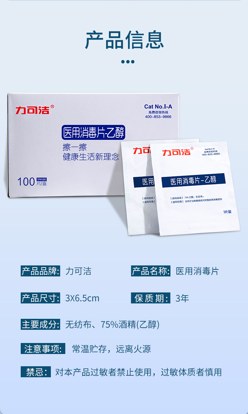 力可洁医用消毒片独立包装100片(65mm*30mm)