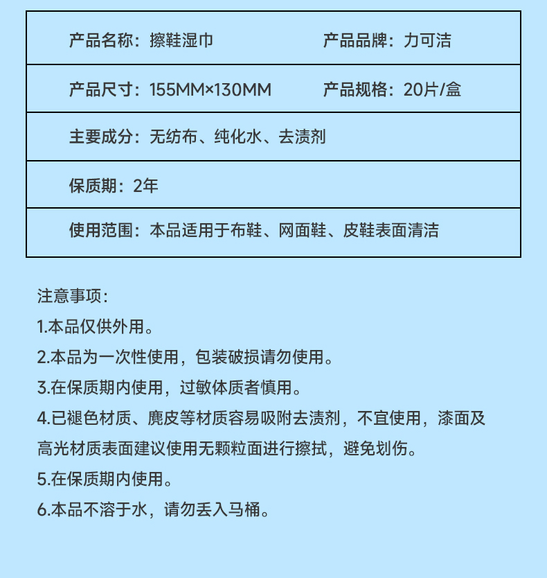 力可洁擦鞋湿巾20片/(155mm*130mm)