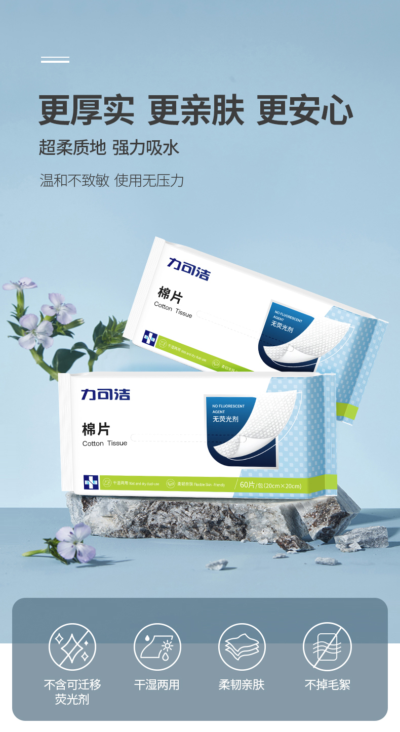 力可洁棉片,无荧光剂,柔软亲肤
