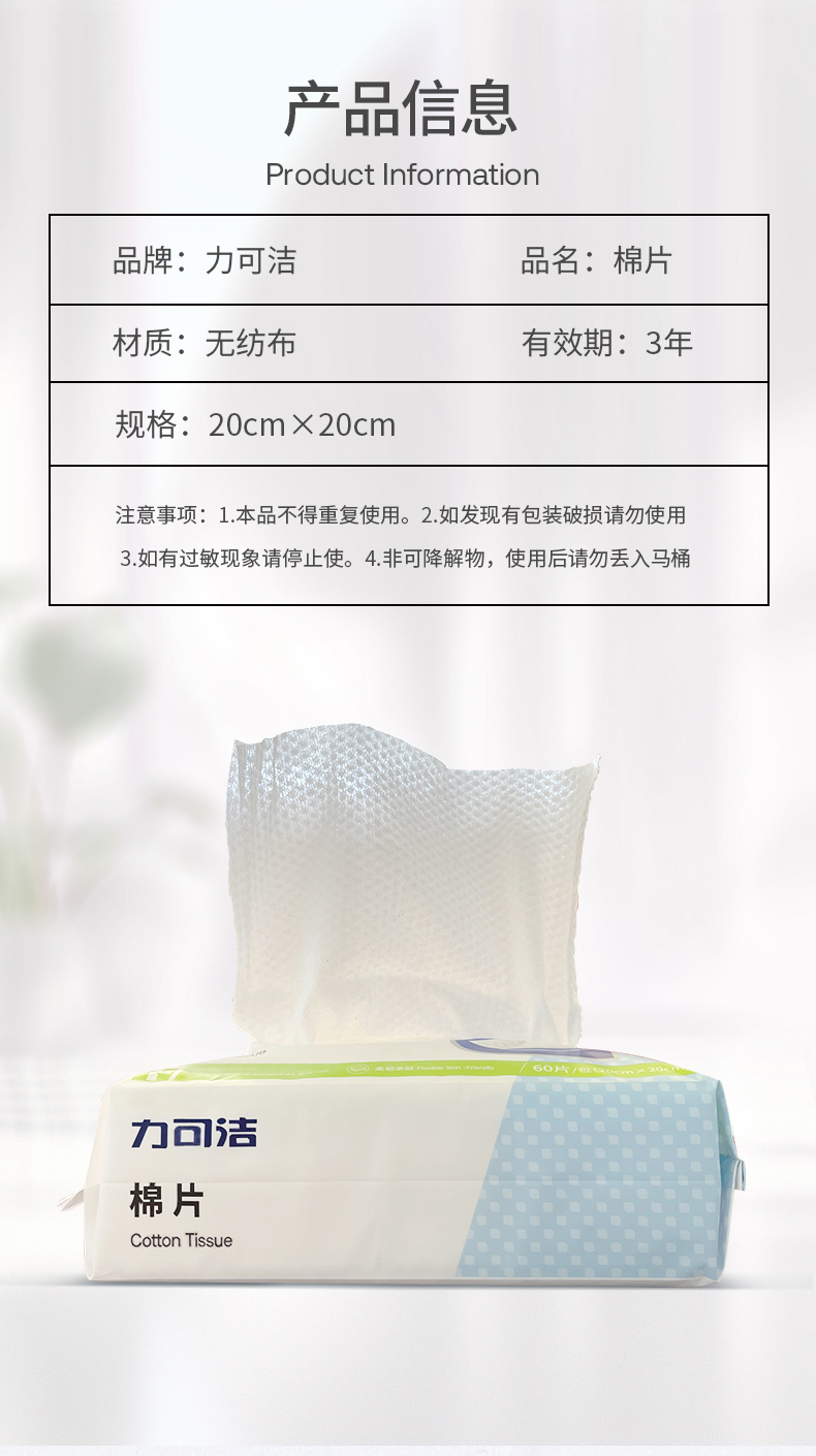 力可洁医用级棉片洗脸巾60抽/(20cm*20cm)